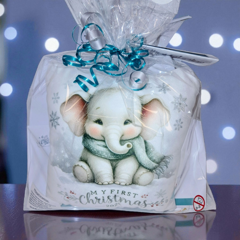 Dieses liebevoll verpackte „My First Christmas“-Kissen ist das perfekte Geschenk für kleine Wunder, die ihr erstes Weihnachtsfest erleben.
